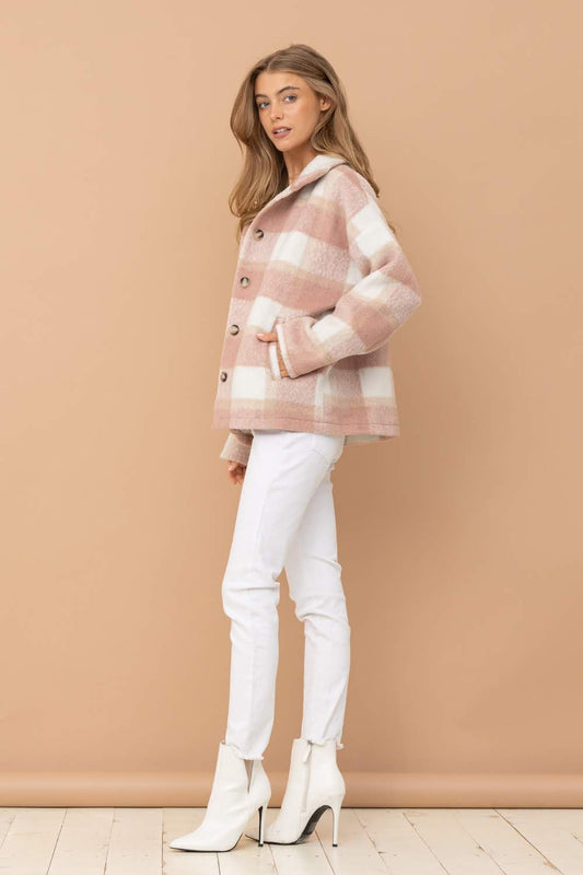 Brushed Yarn Dyed Plaid Jacket - Rose