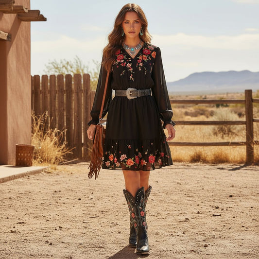 Brown Suede Cow Printed Western Yoke Fringe Skirt